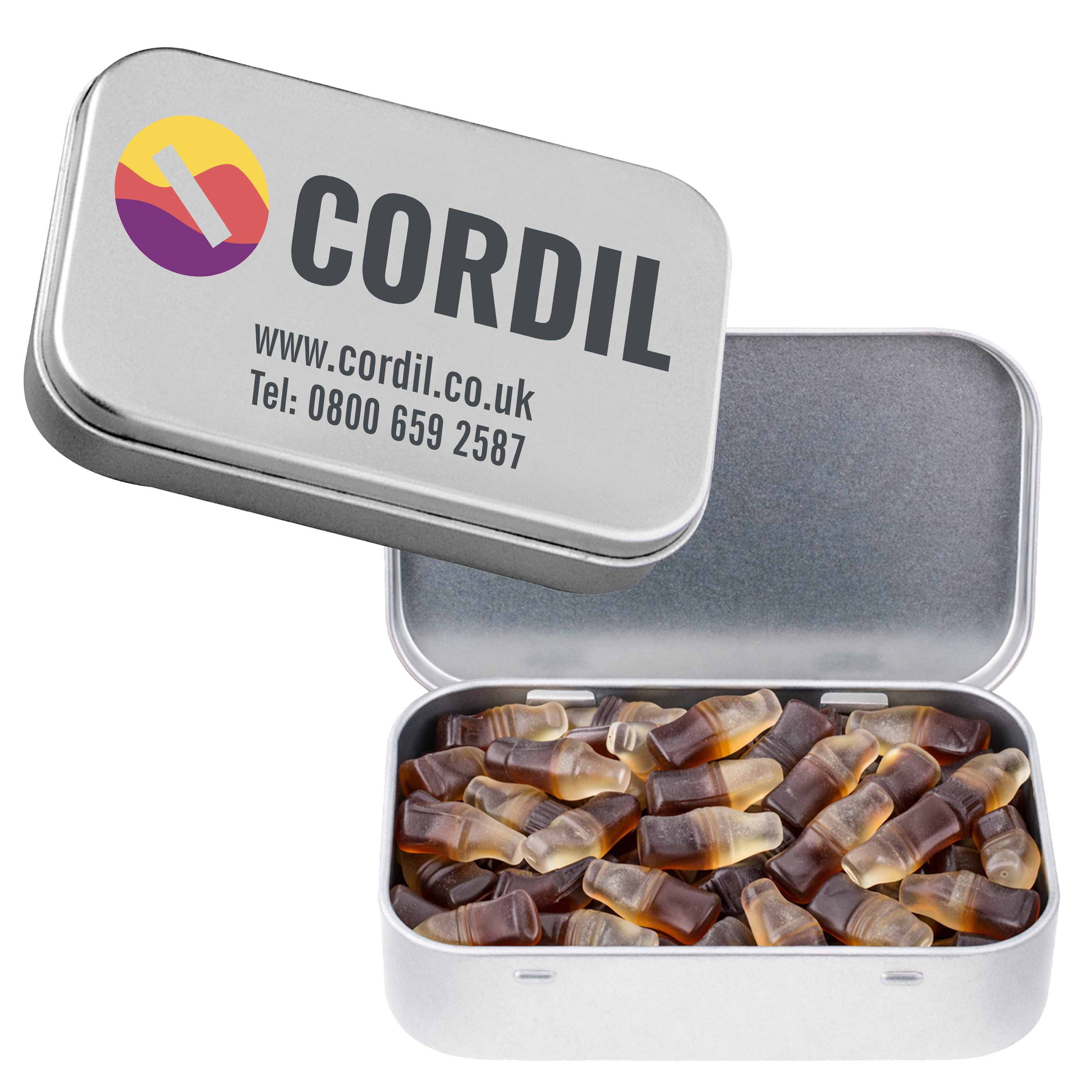 • Durable reusable hinged tin keeps sweets fresh while keeping your brand in sight