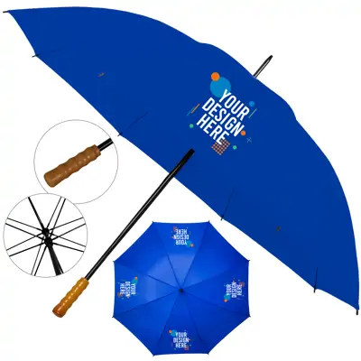 • Our Branded Economy Golf Umbrella is designed with a sturdy 8-panel canopy, ensuring your clients stay dry and your brand stays visible, even in the heaviest downpours!