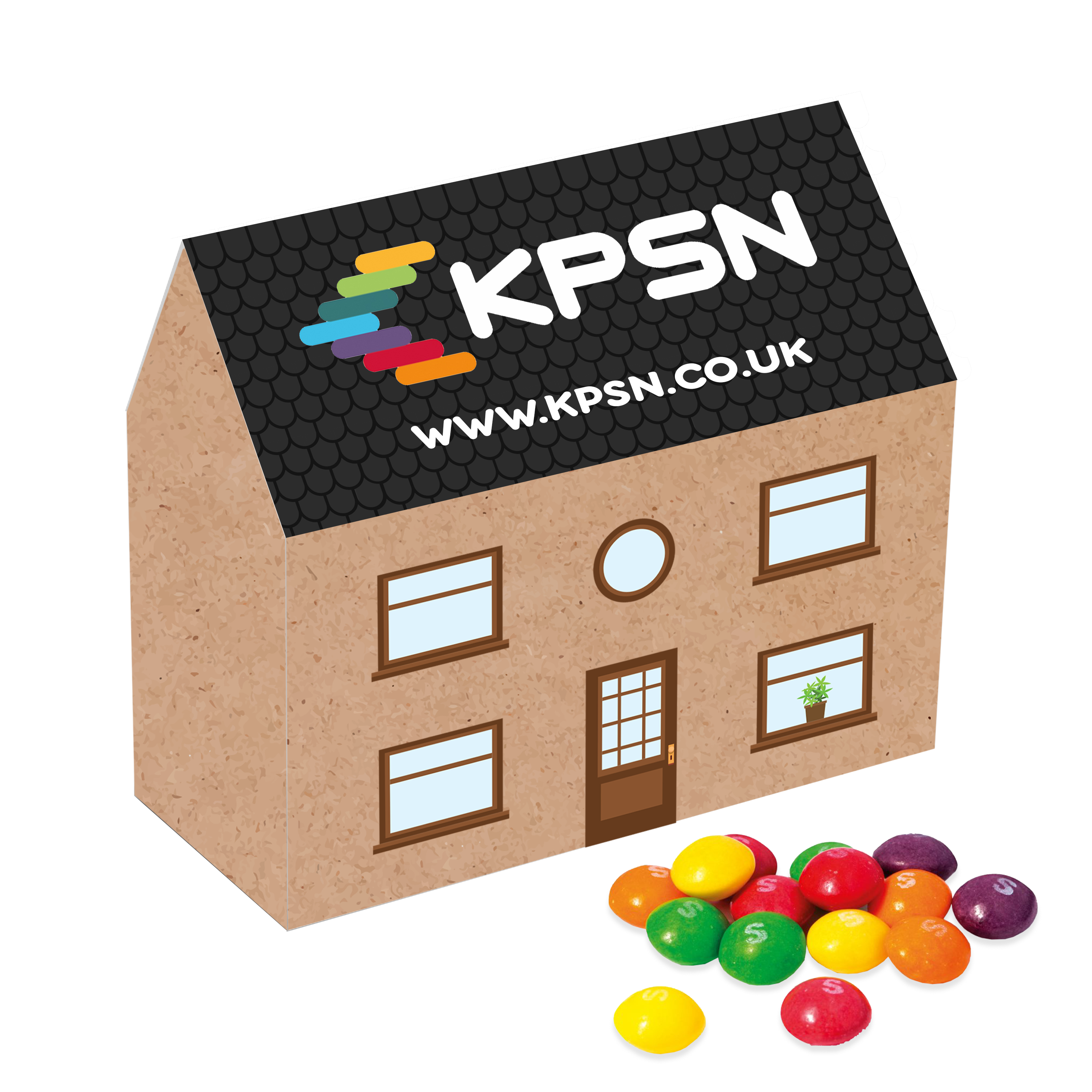 • A delightful Eco House Box filled with fruity Skittles, a sweet little home for colourful treats and your branding